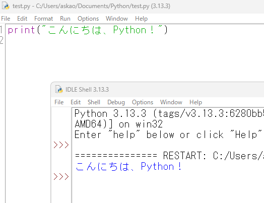 このように、IDLEを使えば、特別な設定をしなくてもすぐにプログラムを書いて動かすことができます。