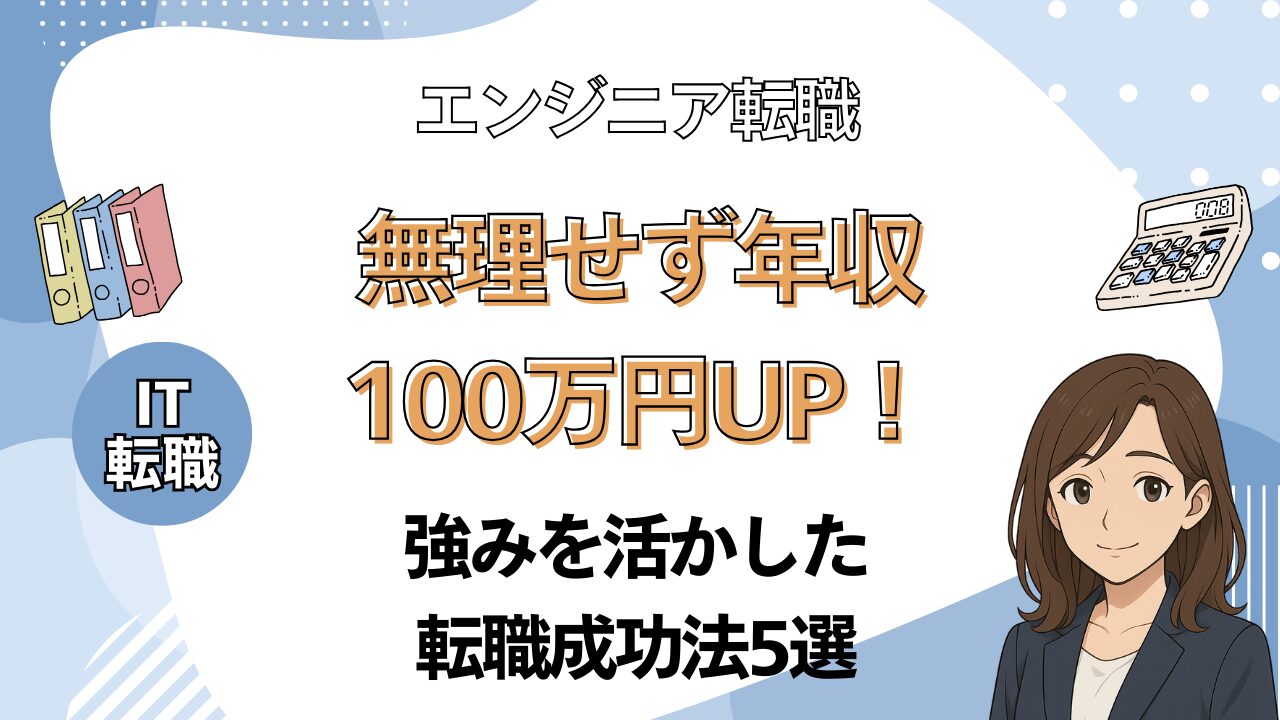 そこで今回は、「無理せず年収100万円以上アップ」をテーマに、エンジニアがキャリアチェンジや転職によって収入を大きく伸ばした実例を紹介します。 よくある「PMやITコンサルを目指すしかない」というイメージにとらわれず、実は強みを活かすことで、意外なキャリアパスでも大きな年収アップが可能なんです。
