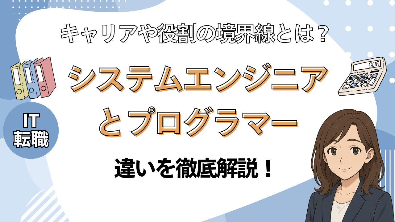 この記事では、システムエンジニアとプログラマーの役割の違い・キャリアパス・転職時に注意すべきポイントをわかりやすく整理していきます。これからIT業界に飛び込みたい方はもちろん、すでに働いていてキャリアに悩んでいる方にとっても役立つ内容になっていますので、ぜひ最後まで読んでみてください。