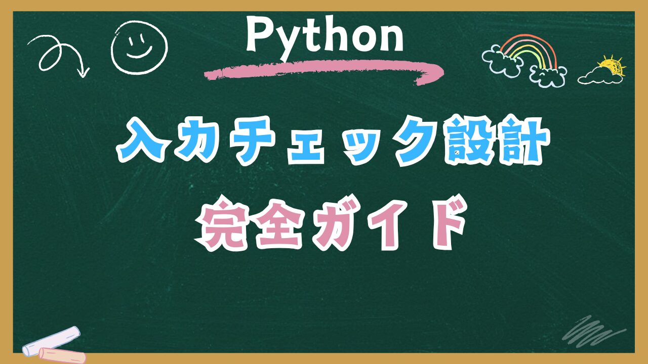 これからPythonを本格的に使っていきたい方はもちろん、 すでに開発経験がある方でも「なんとなく書いていた入力チェック」を見直すきっかけになるはずです。