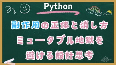 クラス設計・OOP入門 Pythonで考える「副作用」の正体と消し方|ミュータブル地獄を避ける設計思考 Pythonの「副作用」とは何か?ミュータブルな引数やデフォルト引数の罠など、初心者〜中級者がつまずきやすい原因と安全な消し方をやさしく解説します。 2026.01.11 クラス設計・OOP入門